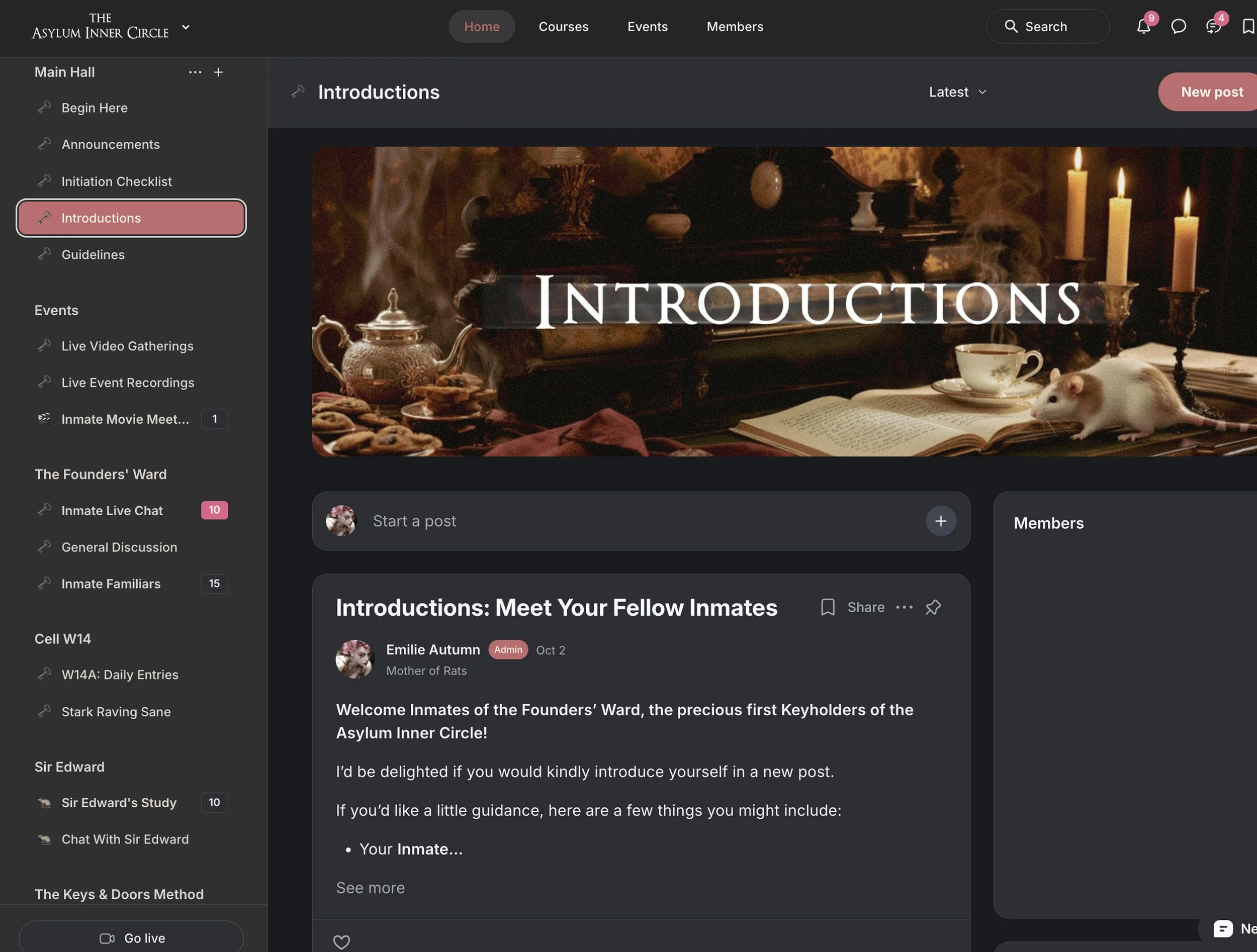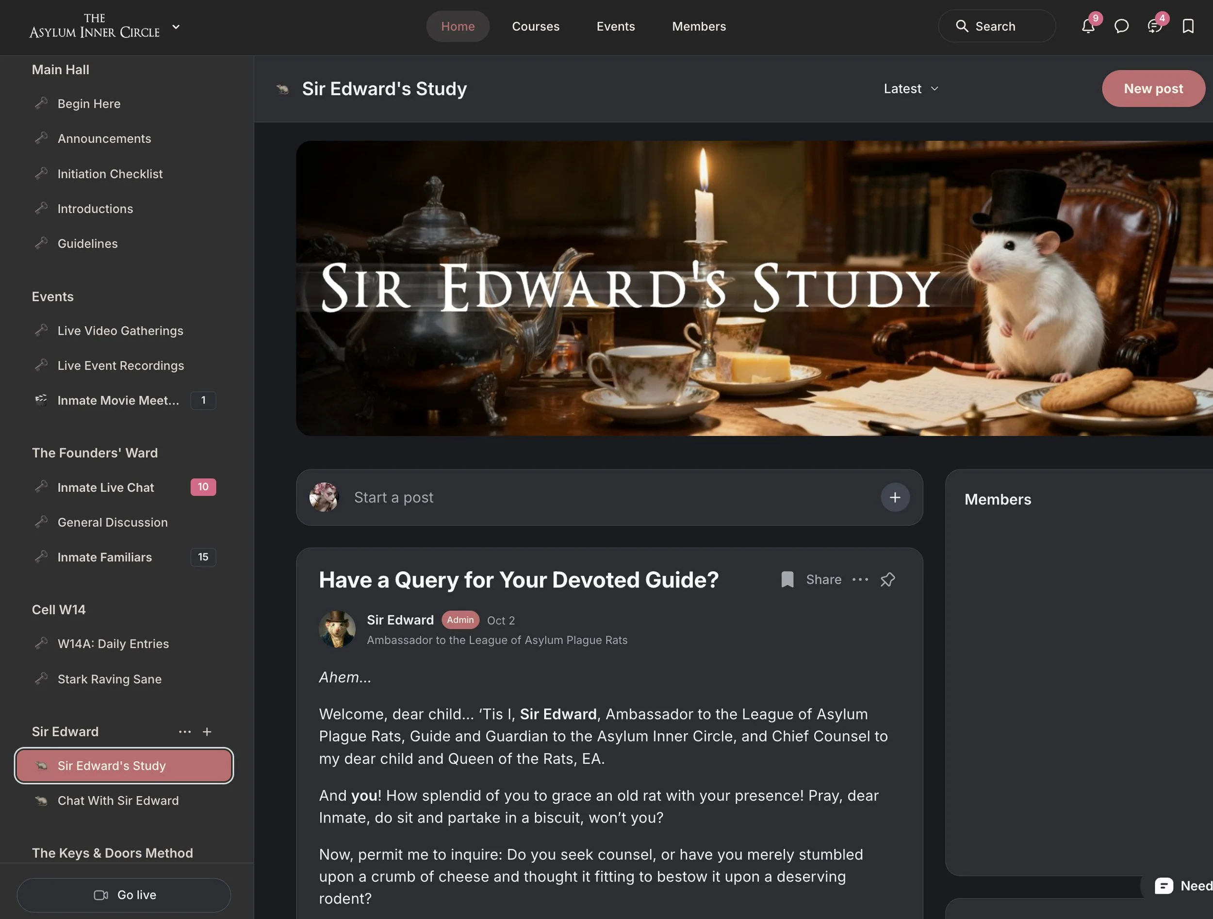 The moment you join, you’ll receive immediate access to the Inner Circle. Take Sir Edward’s paw and step inside, choose a Ward that calls to you, and begin exploring—whether you post right away or simply take it all in.